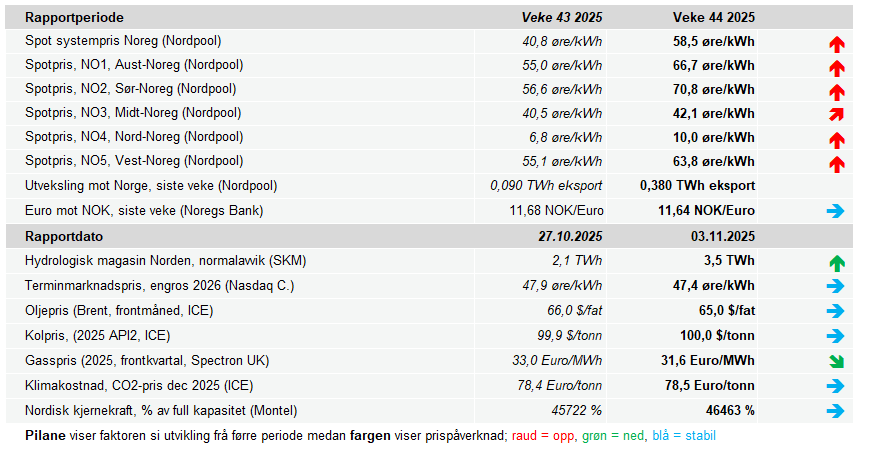 Det er likevel for tidlig å si sikkert hvor kraftig fenomenet blir, eller om det vil påvirke været i vår region. Dersom kulden kommer, kan den likevel bidra til høyere strømforbruk og økt prispress i kraftmarkedet utover vinteren. Framover vil prisnivået i stor grad avhenge av tilgangen på vindkraft og mulig import fra Europa. Bedrifter bør derfor være forberedt på mer variabel og tidvis høyere kraftpris gjennom vintermånedene, og vurdere tiltak for å sikre stabile og forutsigbare energikostnader.