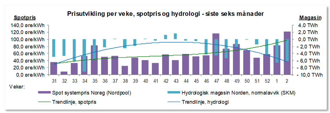 Kraftprisene i Midt- og Nord-Norge nærmet seg systemprisen på grunn av bedre overføring og en mer balansert kraftsituasjon.