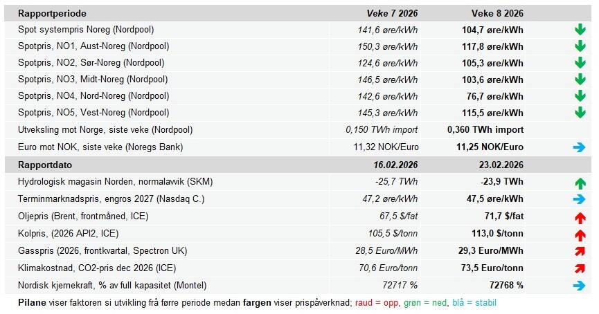 Det betyr at Sør-Norge i perioder kan få høyere strømpriser enn sentraleuropeiske områder gjennom store deler av mars.