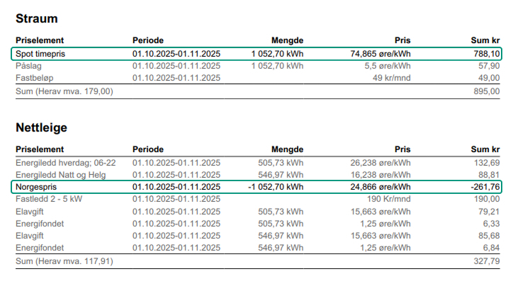👉 Justeringen finner du på nettleiedelen – enten på vår felles faktura, eller på fakturaen fra nettselskapet.